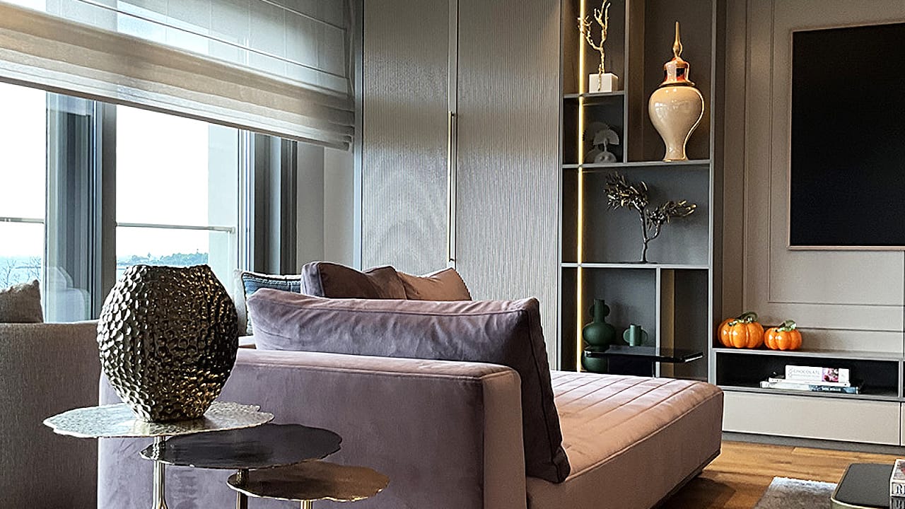 Çiftehavuzlar Projesi, mobilya kurgusu korunurken doğru dekoratif dokunuşlarla zenginleştirilmiş, üst segment yaşam hissini güçlendiren seçkin bir konut atmosferine dönüştürülmüştür.
