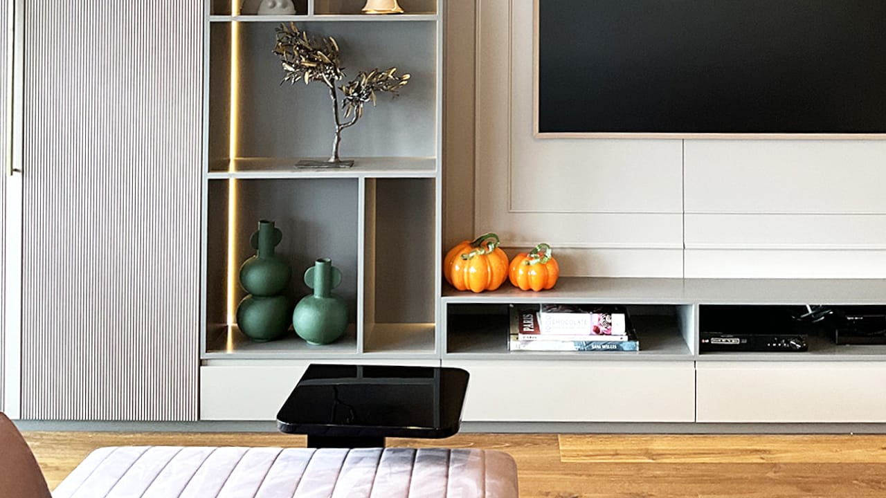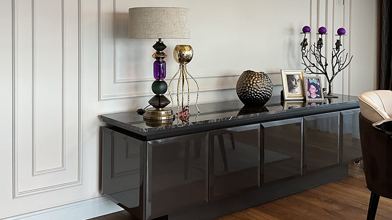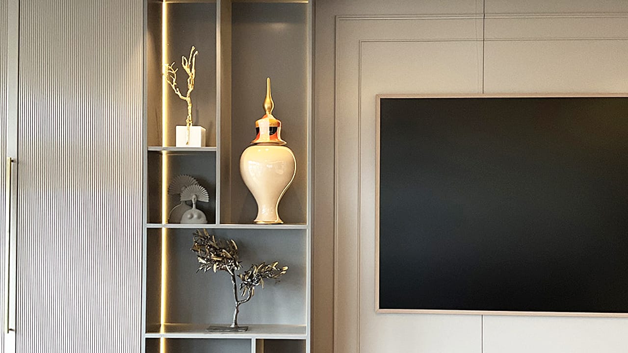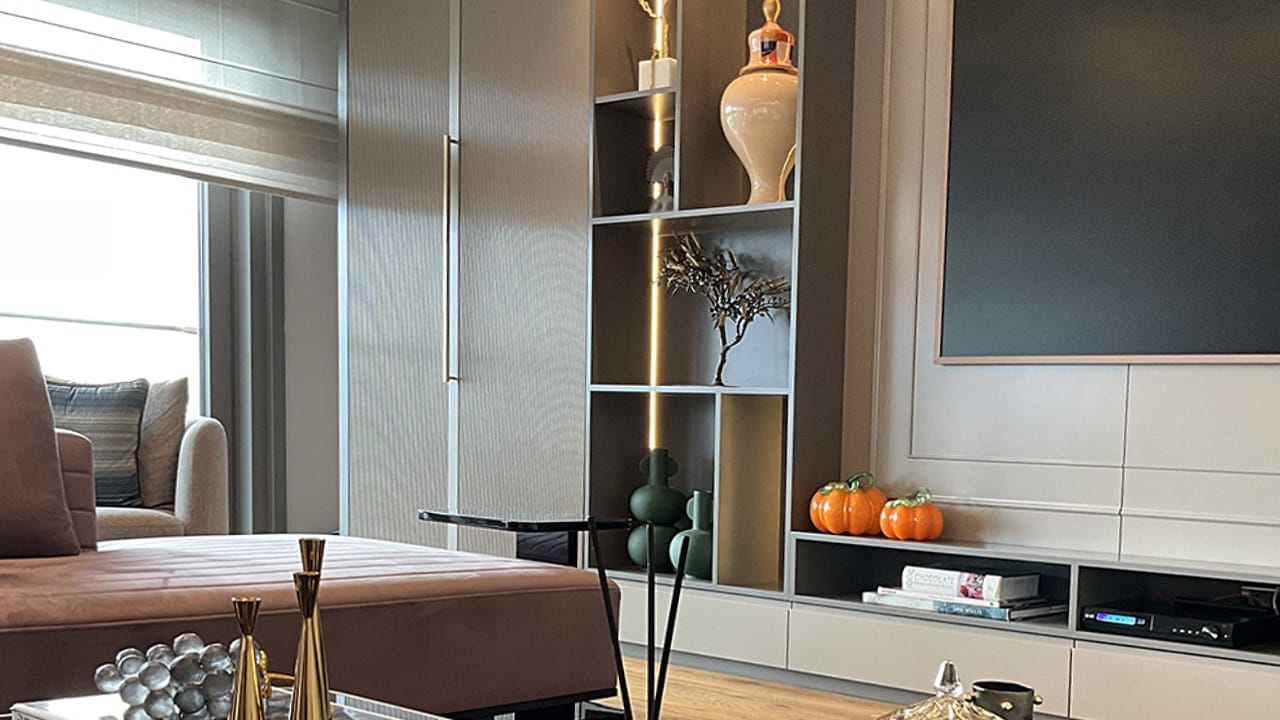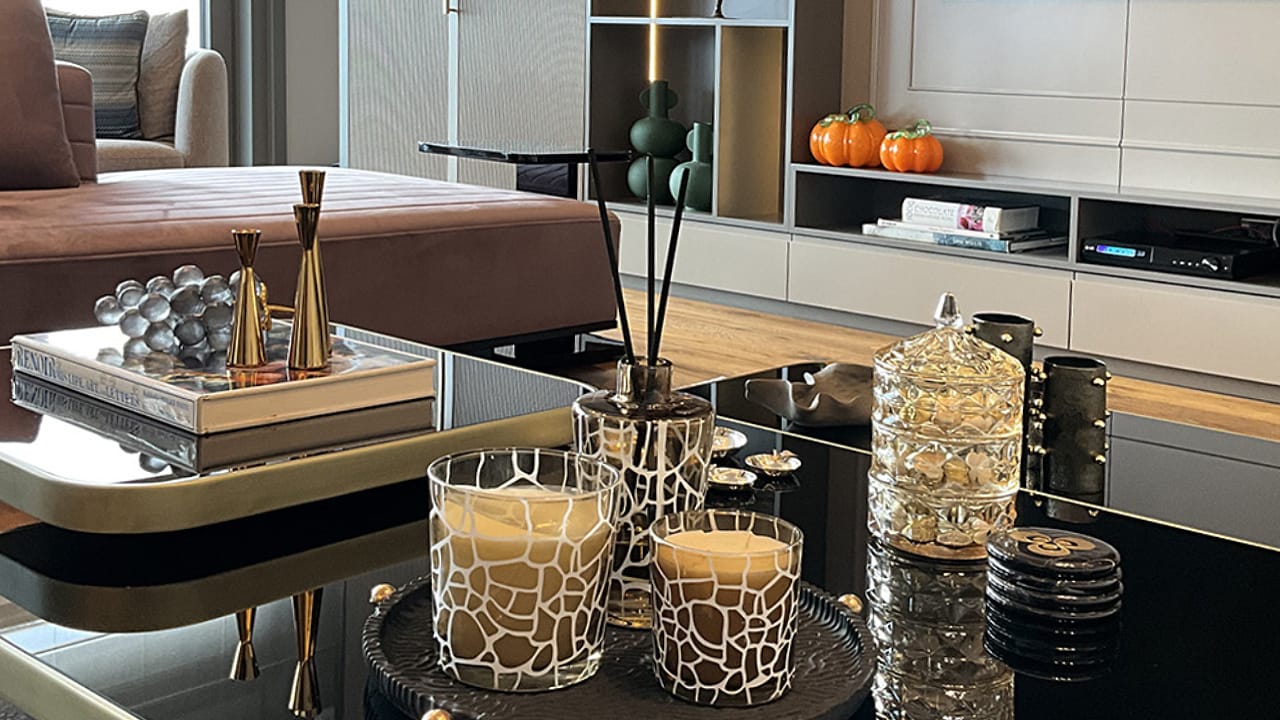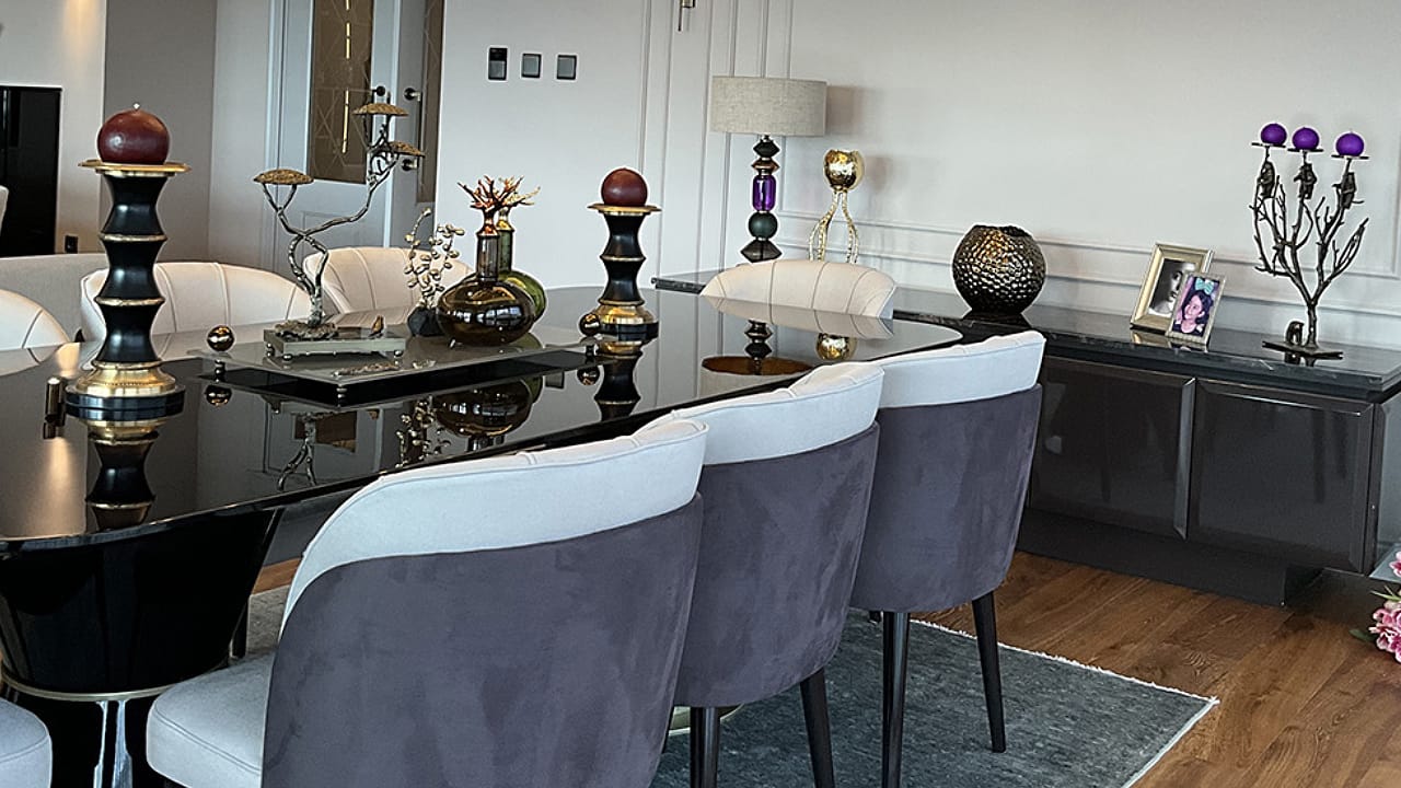 Seçilen dekoratif unsurlar; mermer yüzeyler, metal ve cam detaylarla bütünlük oluşturacak biçimde kurgulanarak mekânda sofistike ve dengeli bir atmosferin güçlenmesine katkı sağladı. Aydınlatma ve aksesuar seçimleri sayesinde yaşam alanında hem prestijli hem de zamansız bir estetik yakalandı.