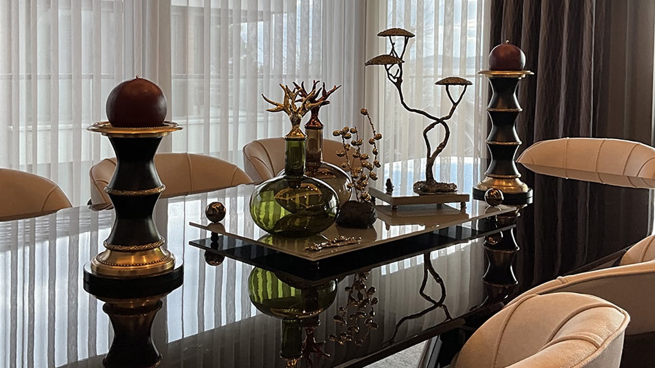 Çiftehavuzlar’da konumlanan bu projede, mekânın lüks yaşam anlayışını destekleyen dekoratif tamamlayıcılar özenle seçilerek yaşam alanına değer katıldı. Projede kullanılan abajurlar, masaüstü objeler, vazolar ve şamdanlar; mekânın genel tasarım diliyle uyum sağlayacak şekilde Pomart14 tarafından titizlikle temin edildi.